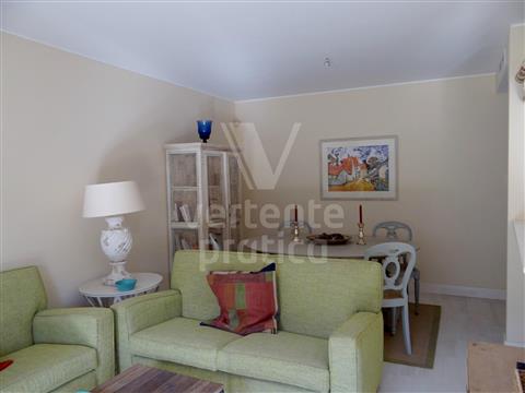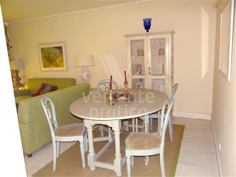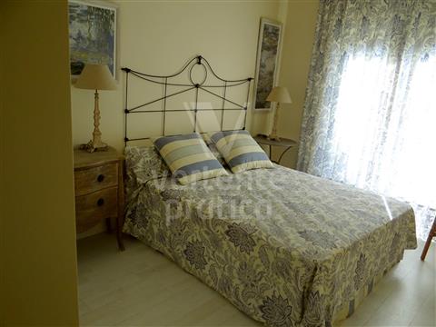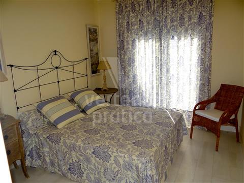 T1, T2, cozinhas totalmente equipadas, salão e quartos, mobilados e decorados em estilo rústico, com climatização, chão em mosaico cerâmico, madeiras lacadas a branco.